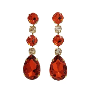 Astor Orange and Gold Crystal Chandelier Earrings, 8cm long, Gold Metal, Bridesmaids Earrings