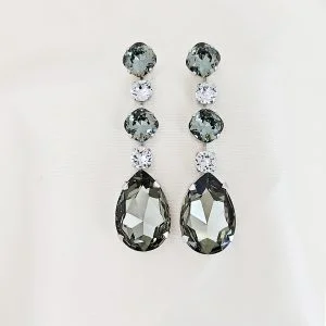 Astor Grey and Clear Crystal Chandelier Earrings, 8cm long, Rhodium Metal, Bridesmaids Earrings