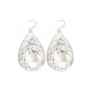 • Cleo Crystal Teardrop 5cm Earrings, Handmade in Australiafashion jewellery, silver teardrop earrings, clear crystal silver teardrop earrings, sterling silver hooks teardrop earrings, filigree silver metal teardrop crystal earrings, 5cm teardrop earrings